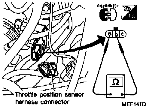 2. Make sure that resistance between terminals (a) and (b) changes when opening throttle valve manually.
