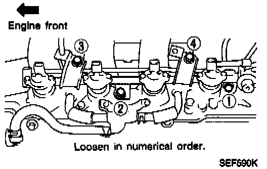 9. Install injectors with fuel tube assembly to intake manifold. Tighten fuel tube bolts to the specified torque (in sequence) as shown in image.