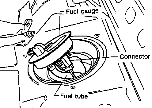 6. Remove fuel gauge sending unit and disconnect the fuel hoses and connector.