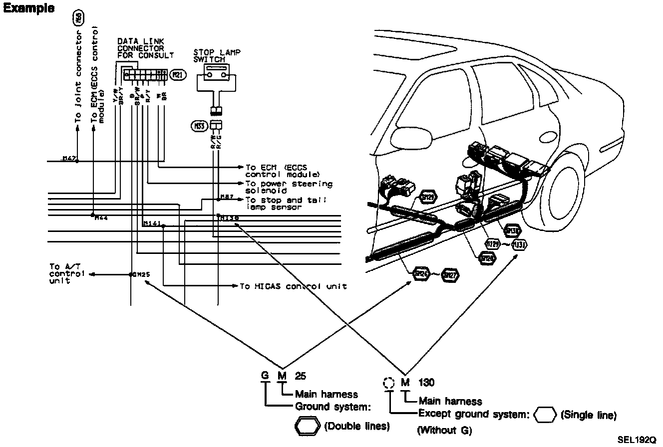 ^ "GM25", "M130" etc., which are shown in the wiring diagram, refer to wiring harness splice points.