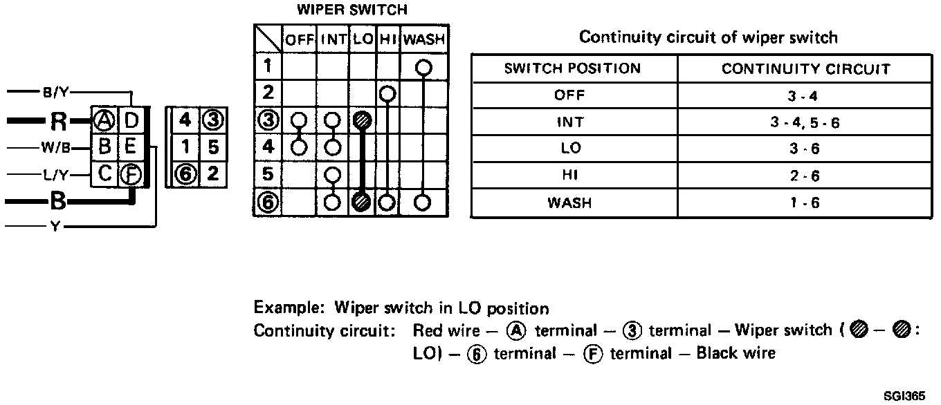 The continuity of the multiple switch is identified in the switch chart in wiring diagrams.