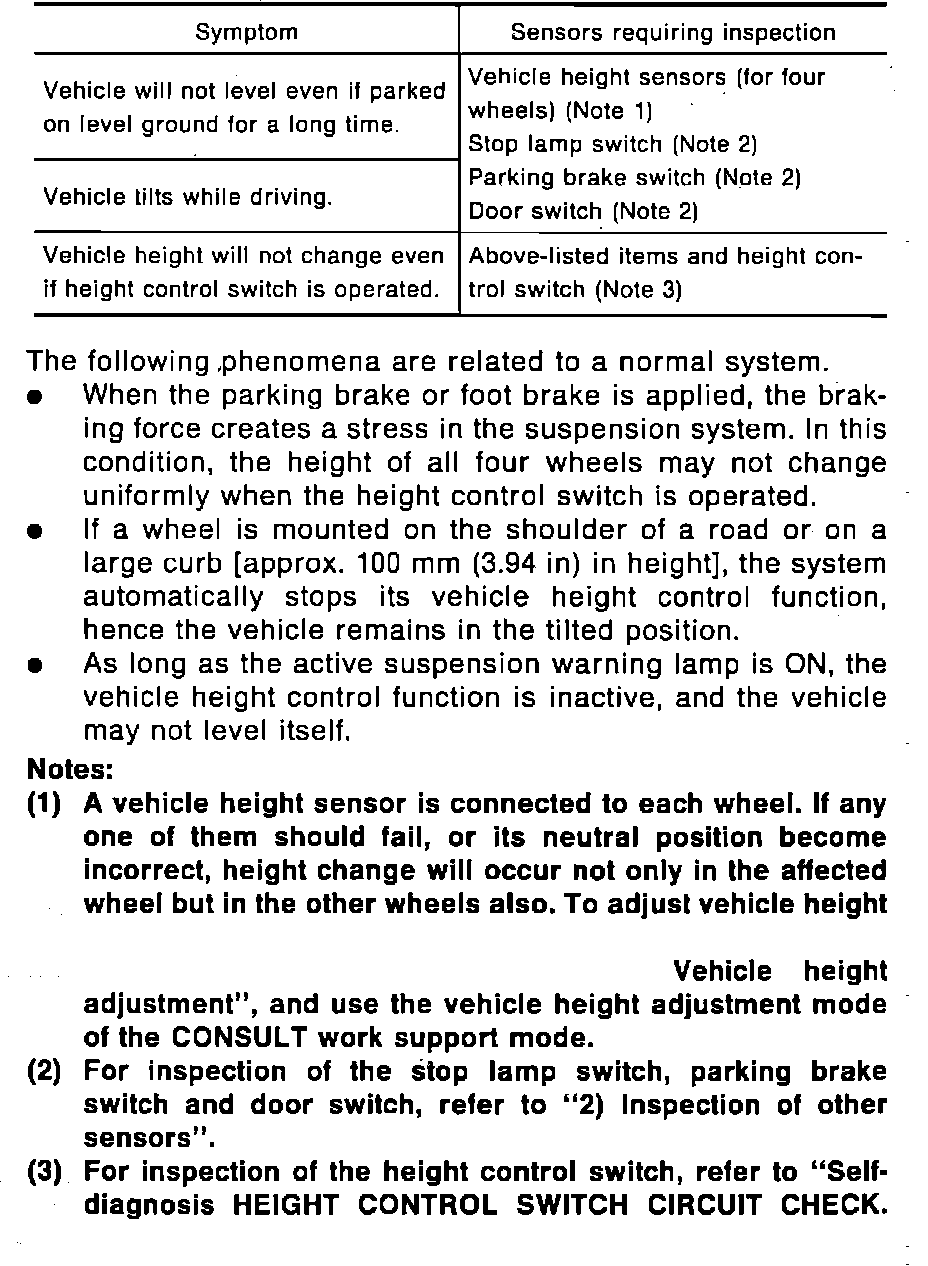Fig. 10 Electrical Diagnosis Procedure 5 (Part 2 Of 6). Vehicle Height Control. FAULTY PHONEME AND SENSOR REQUIRING INSPECTION: