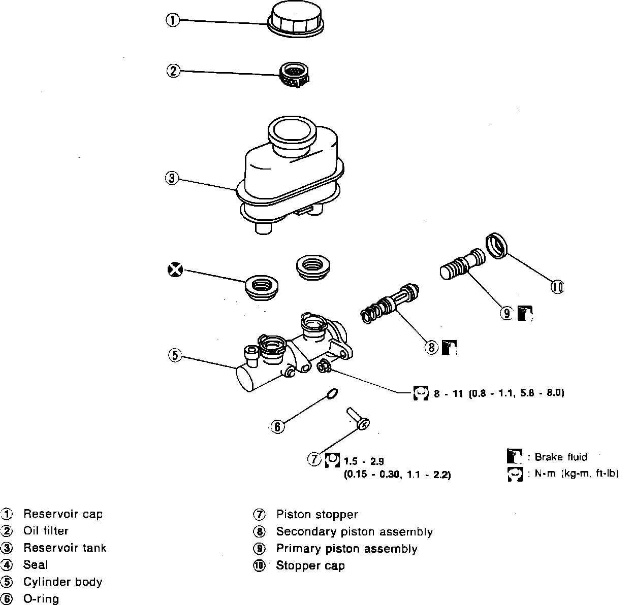 1. Install secondary piston, then primary piston in master cylinder bore.