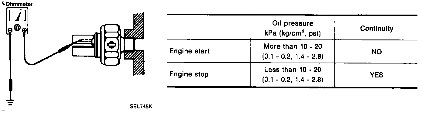 Check the continuity between the terminals of oil pressure switch and body ground.