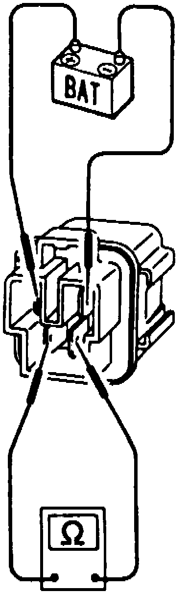 Connect battery and ohmmeter between terminals as shown in