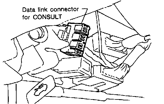 2. Connect "CONSULT" to data link connector. (Data link connector is located in left dash side panel.)