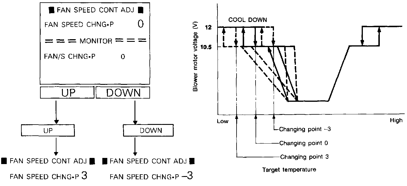FAN SPEED CONTROL ADJUSTMENT: Adjustment of highest blower fan speed changing point.
