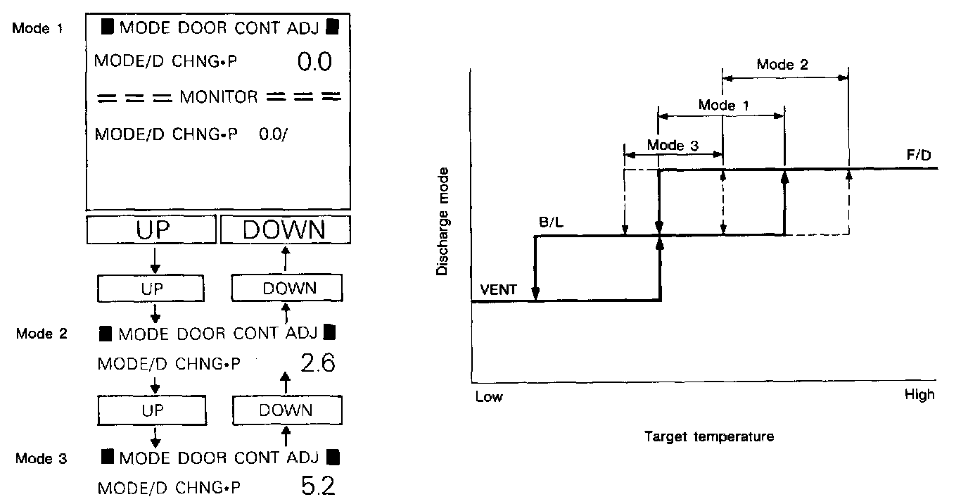 MODE DOOR CONTROL ADJUSTMENT: Adjusting outlet door changing point.