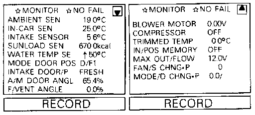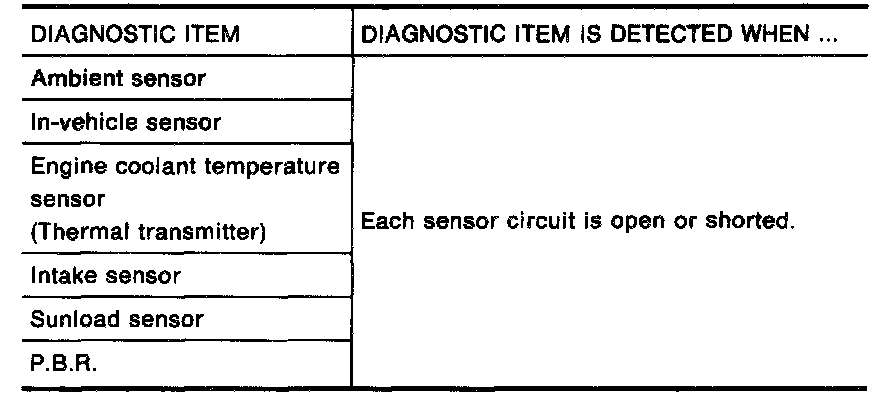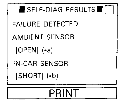 - Conduct SELF-DIAGNOSTIC RESULTS mode under direct sunshine if possible. When conducting indoors, direct electric light (mm. 60W) on the sunload sensor. Otherwise, display will show "SUNLOAD SENSOR [OPEN] (.a)" even when the sensor Is functioning properly.