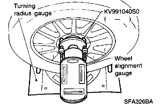 NOTE: Before checking front wheel alignment, be sure to make a preliminary inspection. Vehicle must also be in the unladen position, i.e. fuel, radiator coolant and engine oil full, spare tire, jack, hand tools and mats in designated positions.