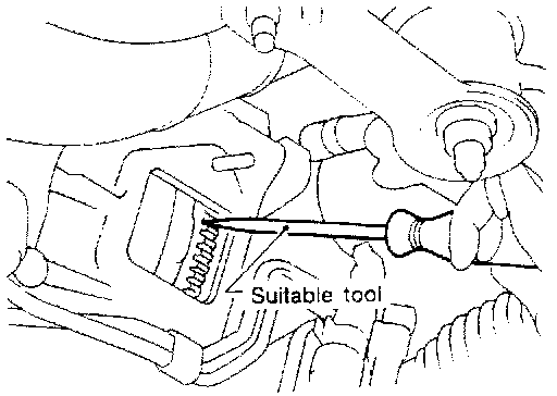 NOTE: At this time, remove starter motor and set a suitable tool to ring gear so that crankshaft cannot rotate.