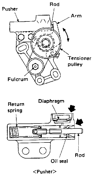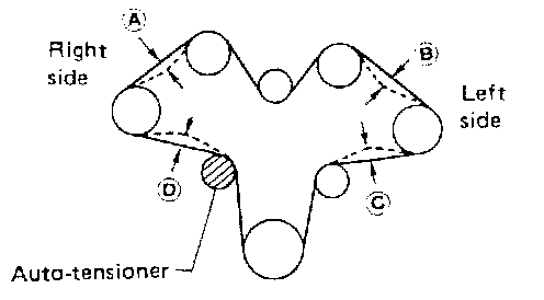 - After removing timing belt, do not turn crankshaft and camshaft separately because valves will strike piston heads.
