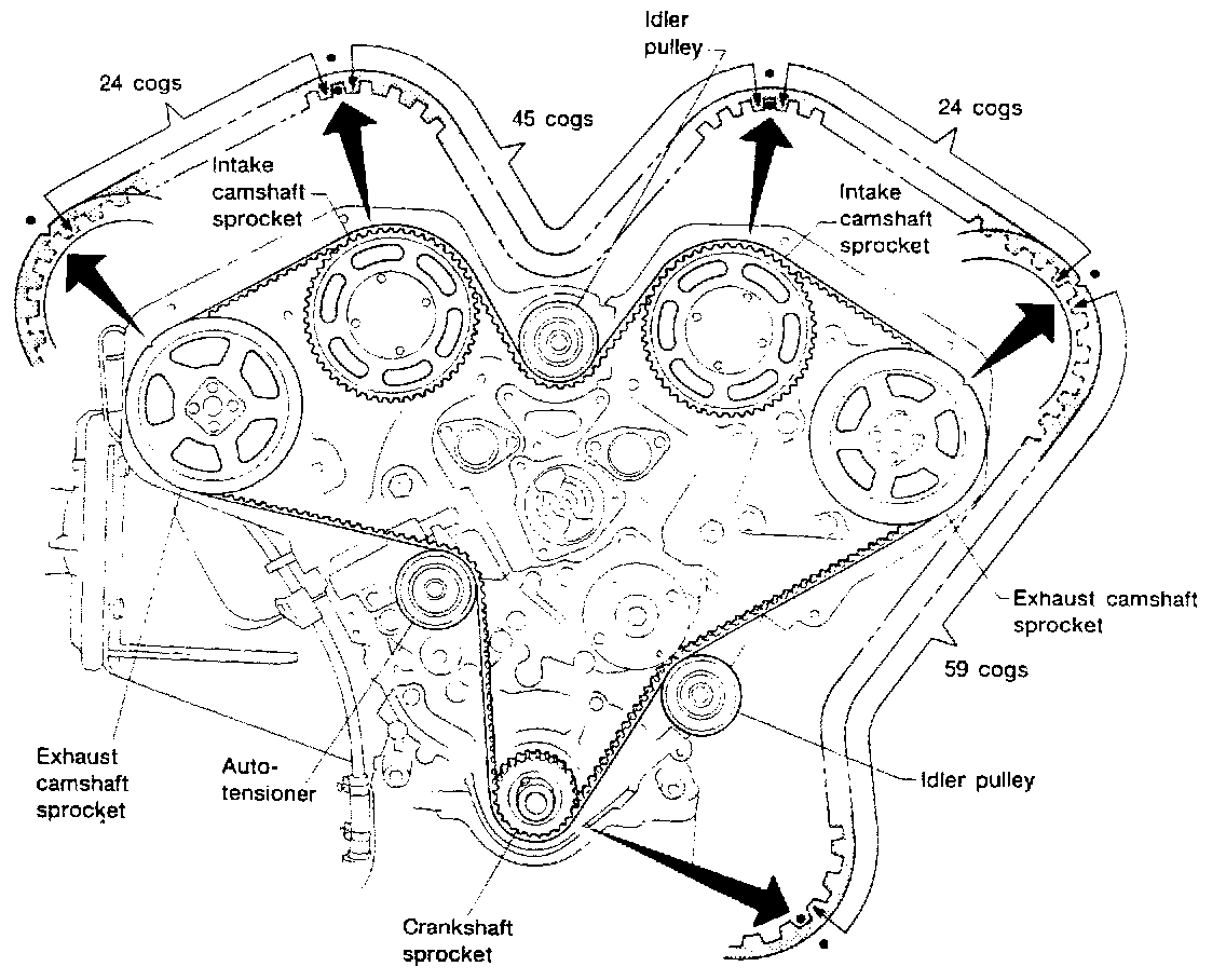 - Do not bend or twist timing belt.