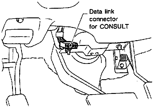 2. Connect "CONSULT" to data link connector for CONSULT. (Data link connector for CONSULT is located in left dash side panel.)