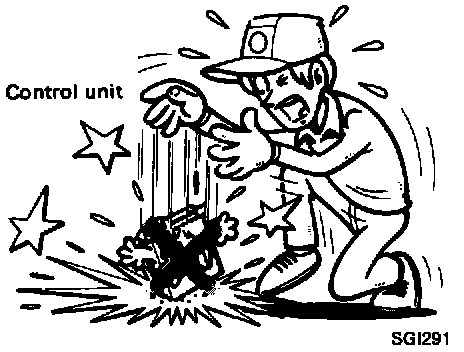 1. Before connecting or disconnecting multiport fuel injection system or E.C.C.S. harness connector to or from any multiport fuel injection system or ECM (ECCS control module), be sure to turn the ignition switch to the "OFF" position and disconnect the negative battery terminal.
