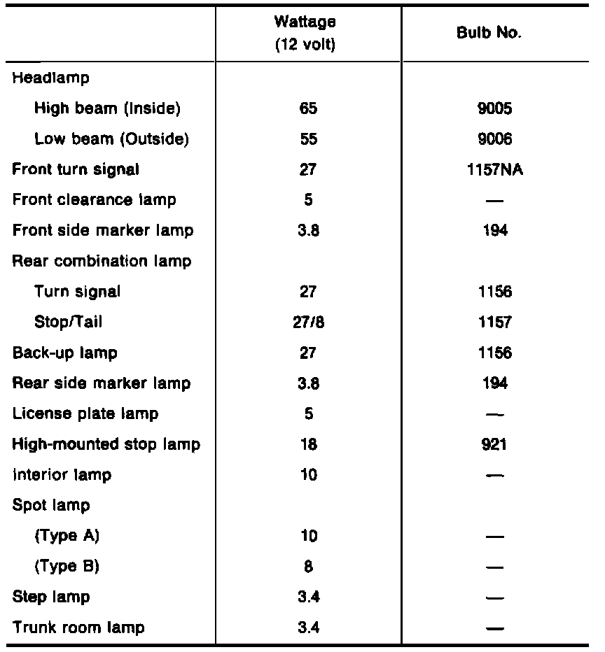 Bulb Specifications: