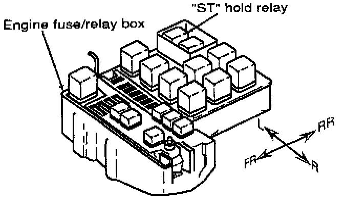 In addition to the ST hold circuit mentioned above, a ST hold relay has been added to countermeasure a continuous starter incident which would occur in Park or Neutral gear with the key in the ON position. The ST hold relay was added as a running change with no part number change (no countermeasure service parts are available).