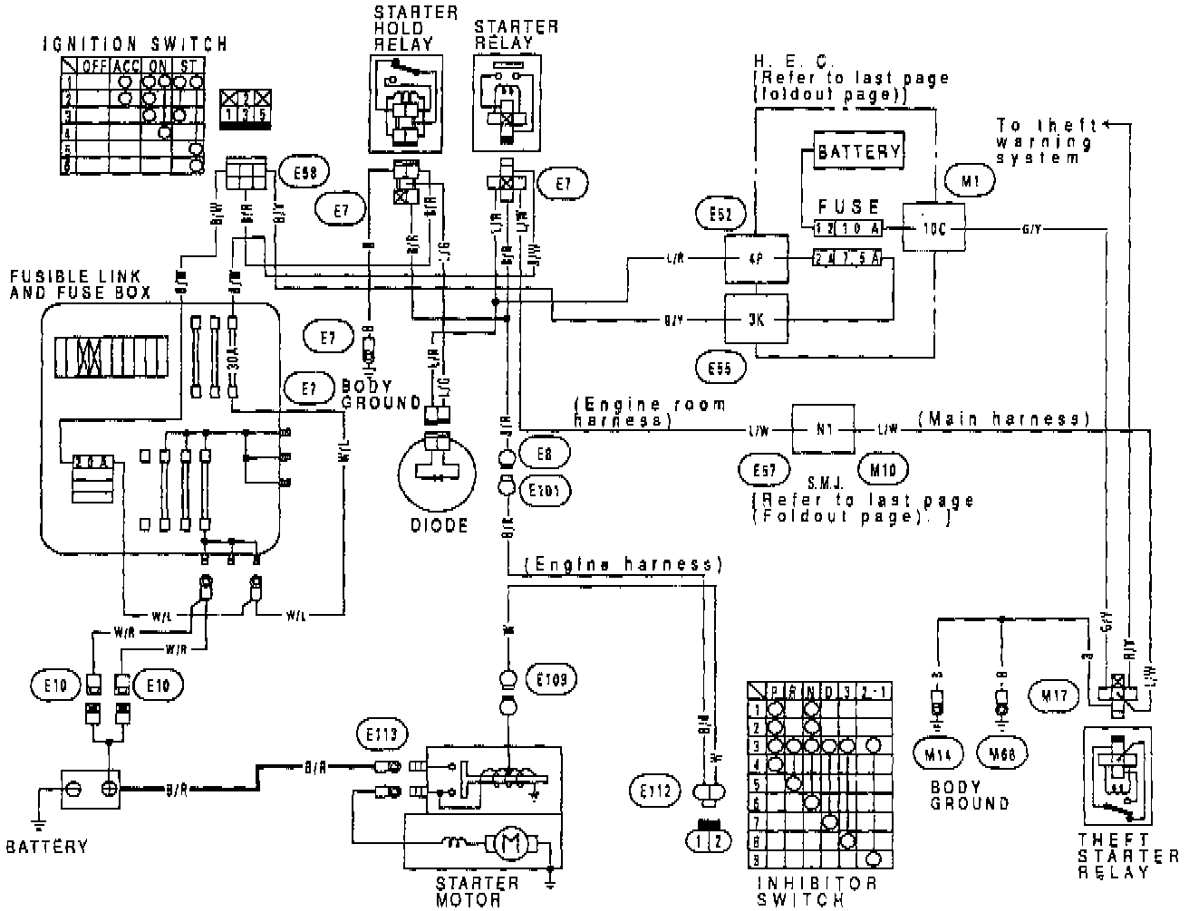 All J30 vehicles produced after the applied date have a "starter hold" (ST hold) circuit added to the starting system. This circuit was added as a running change to eliminate starter chatter when releasing the ignition key to the ON position after starting.
