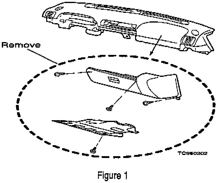 3. Remove the lower instrument cover and glove box assembly from the passenger side as shown in Figure 1.