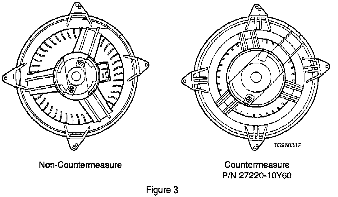 6. Replace the blower motor and fan assembly using countermeasure PIN 27220-10Y60. Ensure all debris is removed from the inside of the blower case.