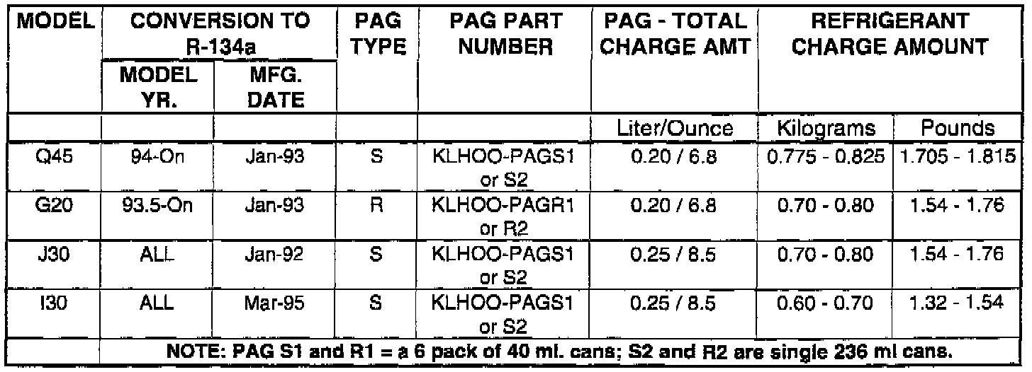 R134A CHARGE AMOUNT/PAG LUBRICANT CHART