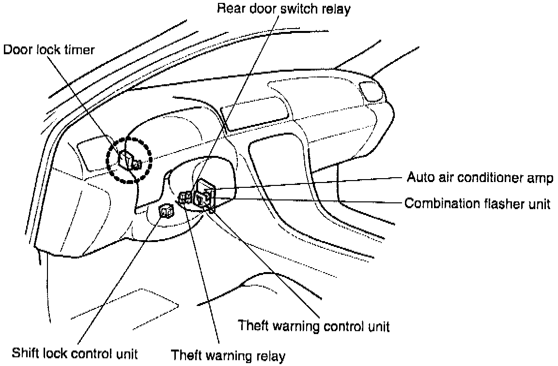 Some J30 owners may complain that the power door locks intermittently lock when a door is slammed or when the vehicle is driven on rough or irregular road surfaces, especially during periods of high heat and humidity. This incident may be caused by a momentary open in the door "lock knob switch" circuit, which serves as a signal to the door lock timer to lock all doors. New door lock timer assemblies are available which have an increased delay to ignore momentary opens in the door "lock knob switch" circuit. However, this door lock timer will not be effective if the vehicle has poor connections anywhere in the door "lock knob switch" circuit.