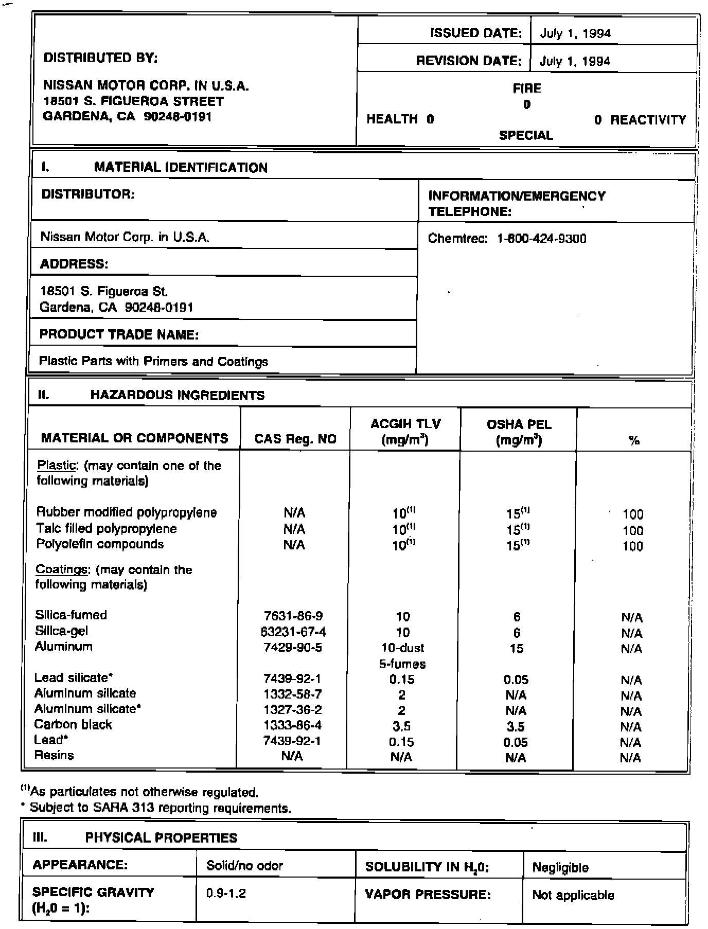 Material Safety Data Sheet - Plastic Parts