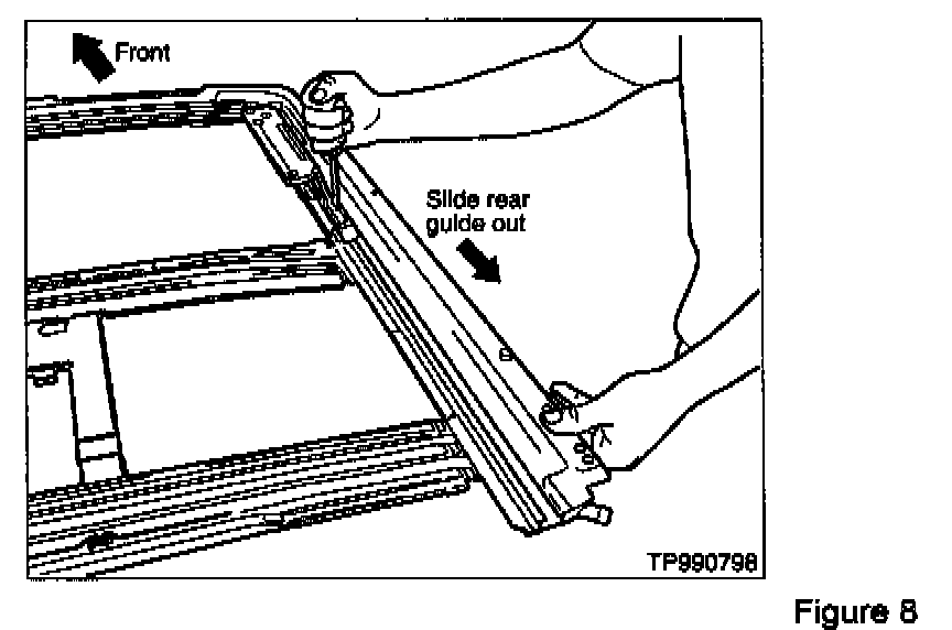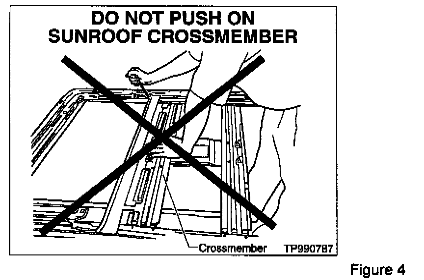 - Do not press on the sunroof rail assembly cross members as they may bend (see Figure 4).
