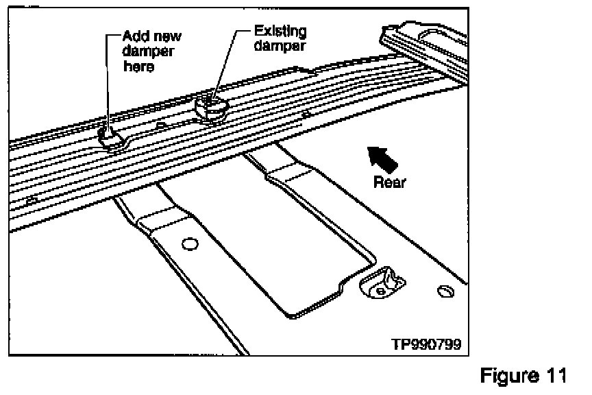 12. Install the new damper (on the empty metal tab) on the rear of the sunroof rail assembly (see Figure 11).