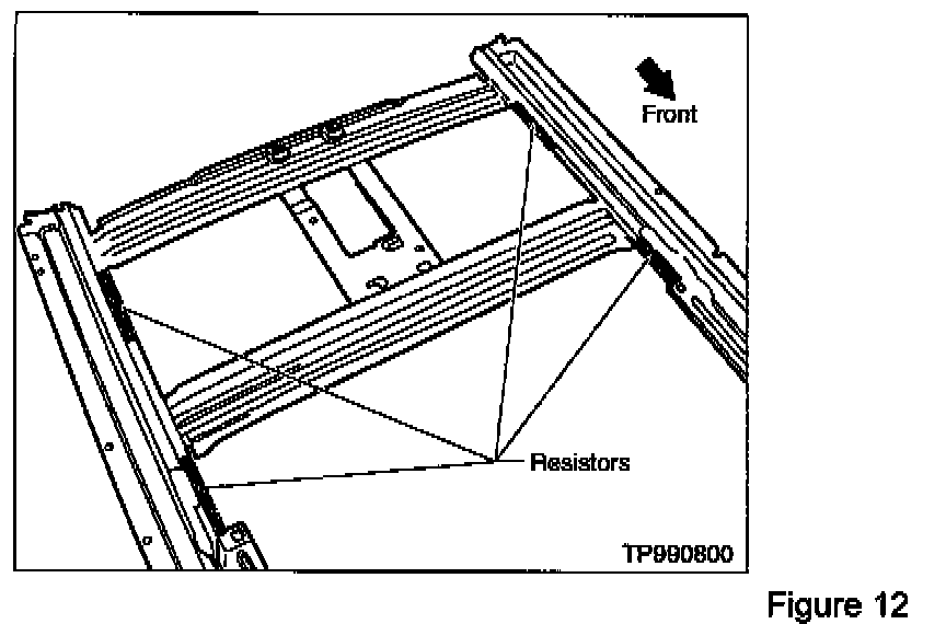 13. Install two additional resistors on the sunroof rail assembly (see Figure 12).