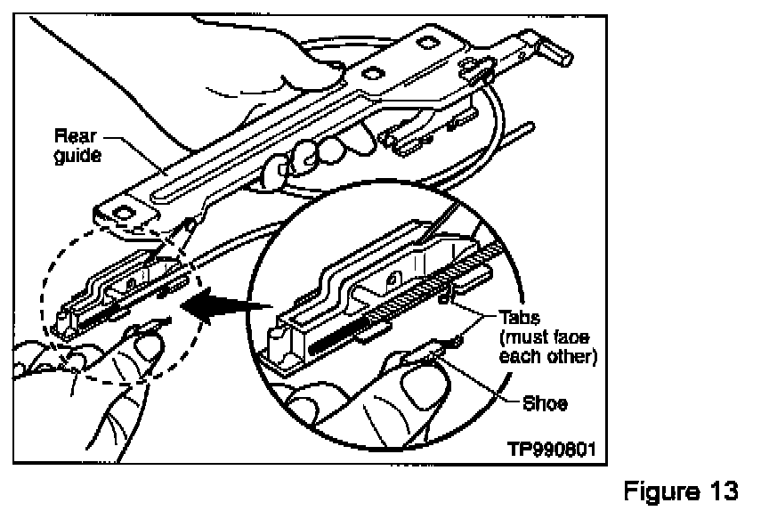 NOTE: Install the white plastic shoes so the tabs face each other (see Figure 13).
