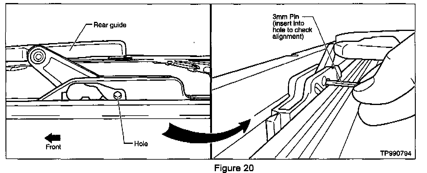 22. Move the rear guide until the holes on the rear guide and link line up with each other (see Figure 20).