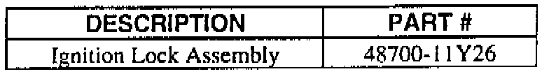 2. If electrical testing of the lock key assembly confirms that the switch is not operating properly, replace [*] the ignition lock assembly, P/N 48700-11Y26.