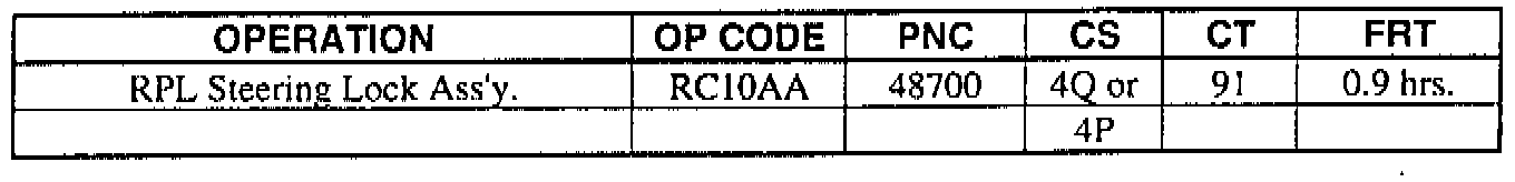 [*] NOTE: Prior to replacement of the ignition lock assembly, have the new ignition lock assembly "re-keyed" to the old key code. A qualified locksmith may be contracted to perform this operation. IT IS NOT NECESSARY TO REPLACE AN ENTIRE VEHICLE LOCK SET FOR THIS INCIDENT REPAIR.