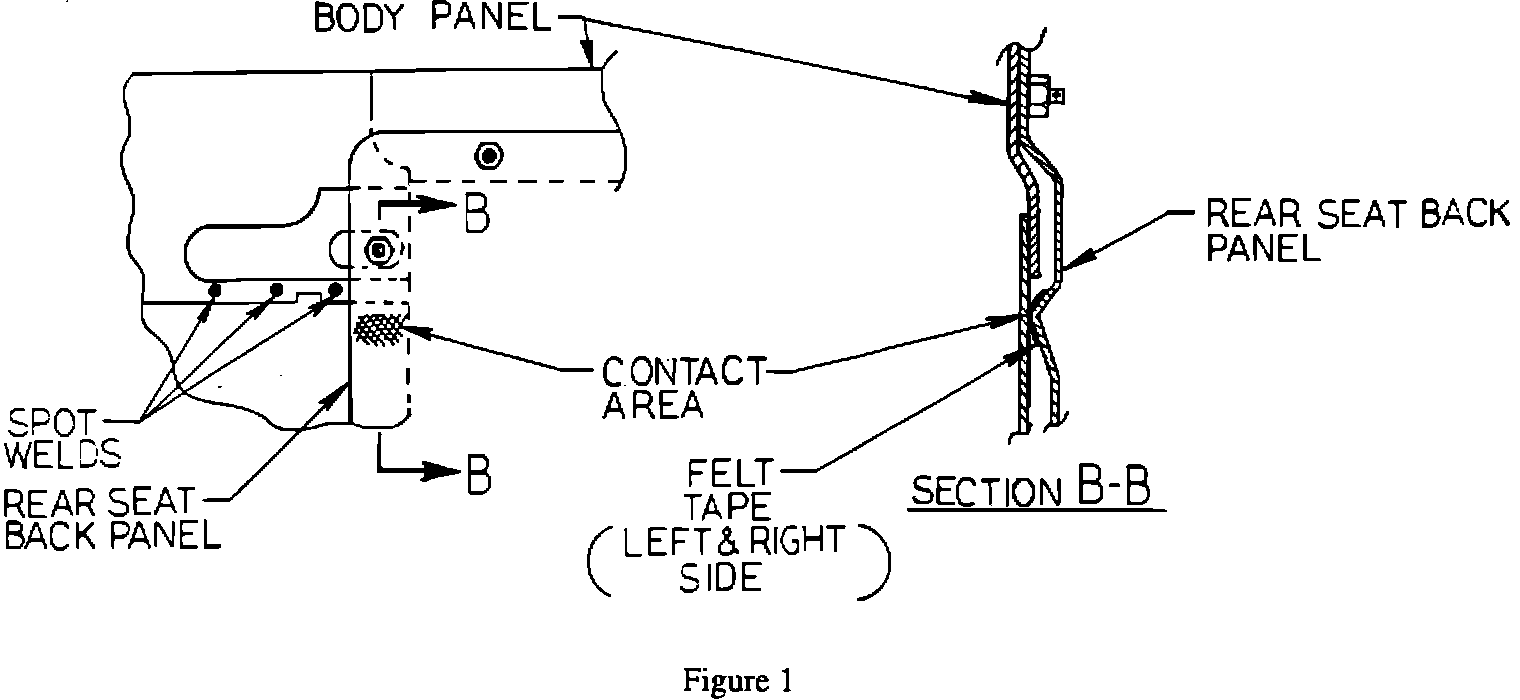 2. Remove the access panel behind the rear seat back. You should be able to identify where the two (2) panels have been rubbing together (Figure 1).