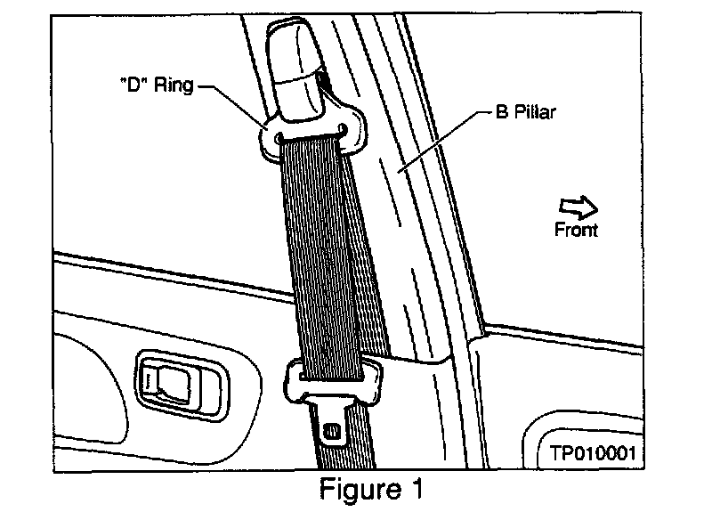 Residue buildup on the front seat belt "D" ring (see Figure 1) can cause slow retraction of the seat belt webbing. If slow seat belt retraction occurs, it may result in the following incidents after the seat belt is unbuckled: