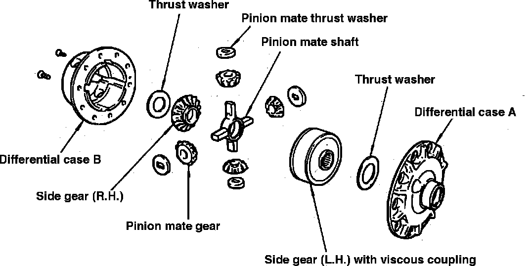 1. Measure clearance between side gear thrust washer and differential case.