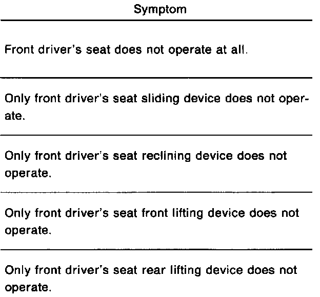 Check sliding, reclining, front lifting and rear lifting operations using power seat control switches.