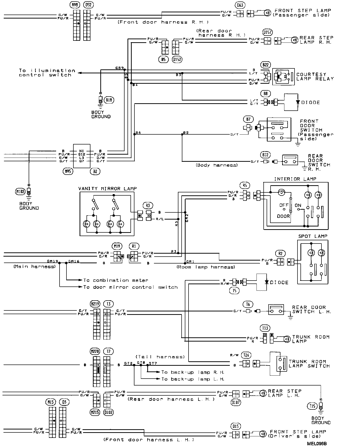 Interior, Spot, Step, Foot And Trunk Room Lamps Wiring Diagram (Part 1 Of 2):