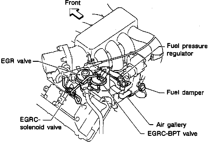 The EGR valve is controlled by the ECCS Control System (ECM) through the EGR Solenoid and by exhaust back pressure acting on the Back-Pressure Transducer (BPT) Valve.