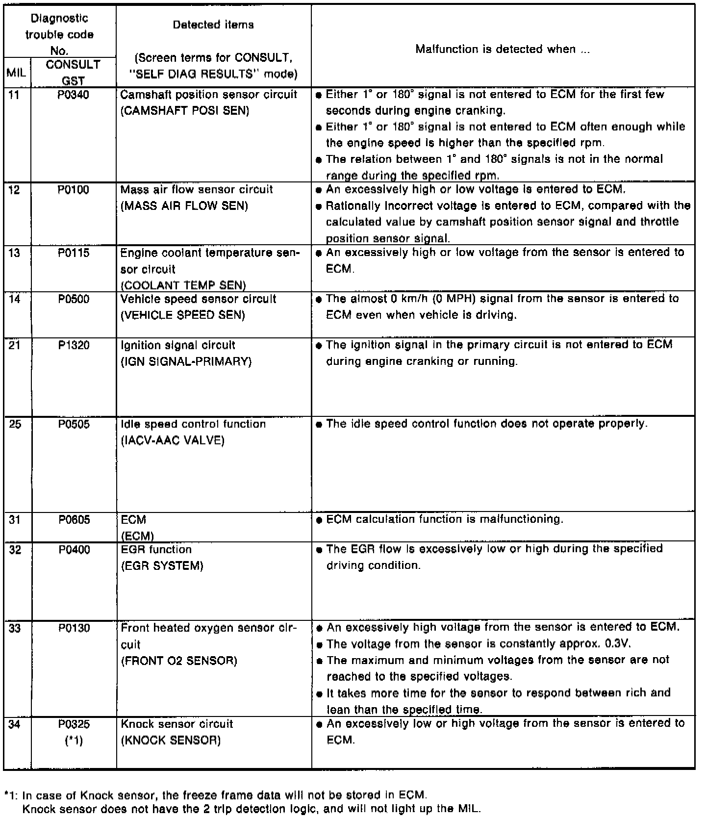 Engine Related DTC Charts - 11 to 34