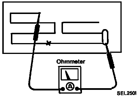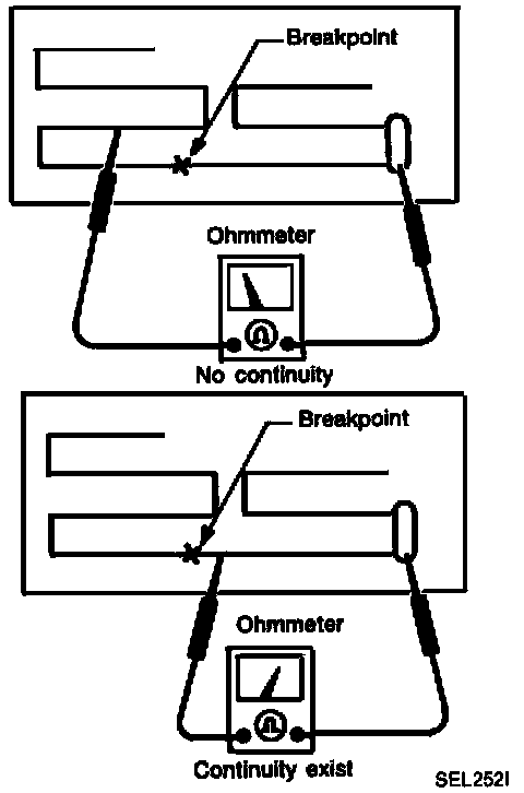 3. To locate broken point, move probe to left and right along element to determine point where tester needle swings abruptly.