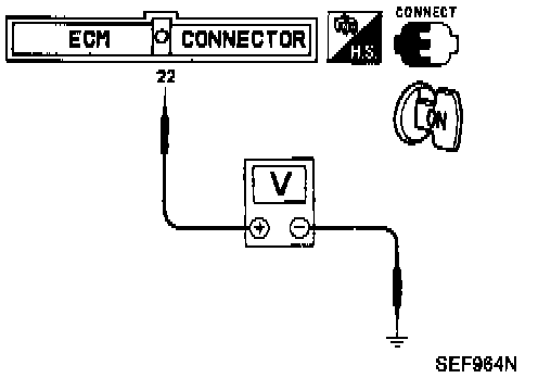 2) Check voltage between ECCS Control Module terminal (22) and body ground in the following conditions.