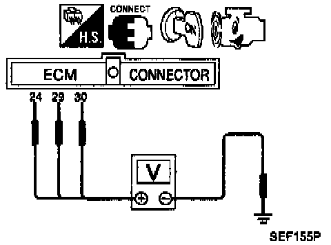 4) Check voltage between ECCS Control Module terminal (30) and ground.