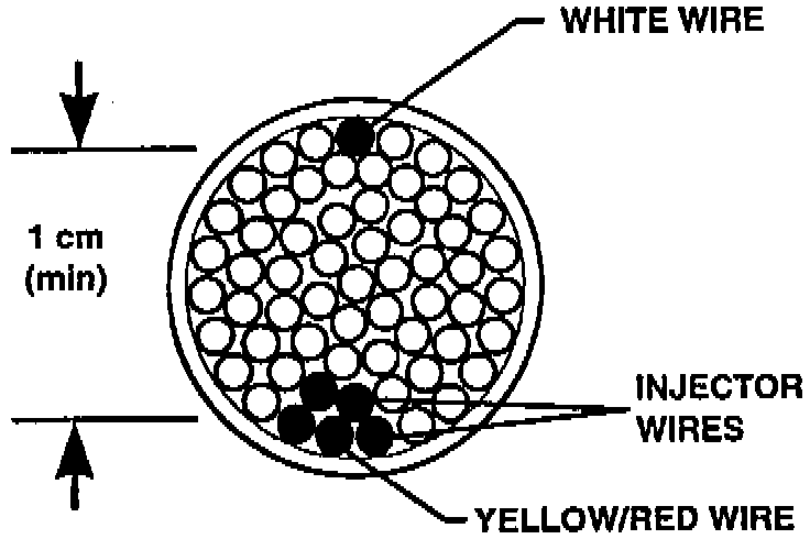 4. Retape the harness together keeping the two (2) groups of wires separated by at least 1 cm (0.4 inch), all the way from the ECM connector up to where the shield begins for the white wire.