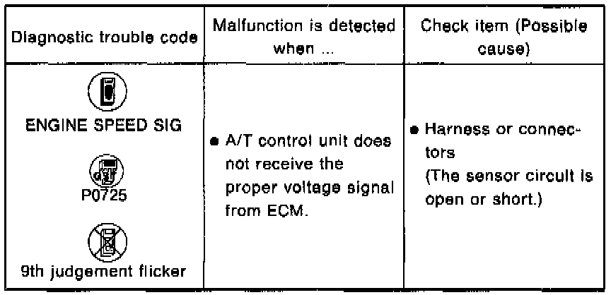 2. Drive vehicle under the following conditions: Shift lever in D, vehicle speed higher than 10 km/h (6 MPH), throttle opening greater than 1/8 of the full throttle position and driving for more than 10 seconds.