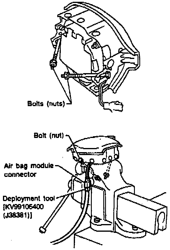 c. Connect deployment tool No. KV99106400 (Kent-Moore J38381), or equivalent, to air bag electrical connector.