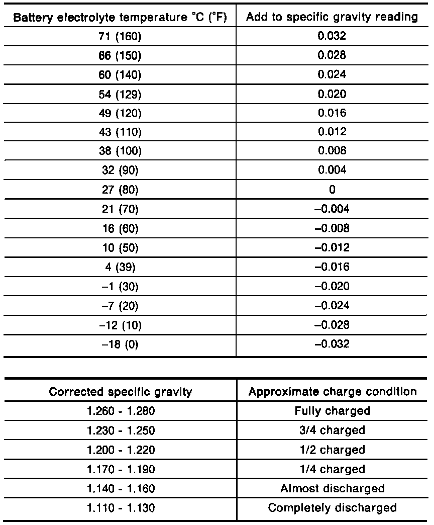 Use the chart to correct your hydrometer reading according to electrolyte temperature.