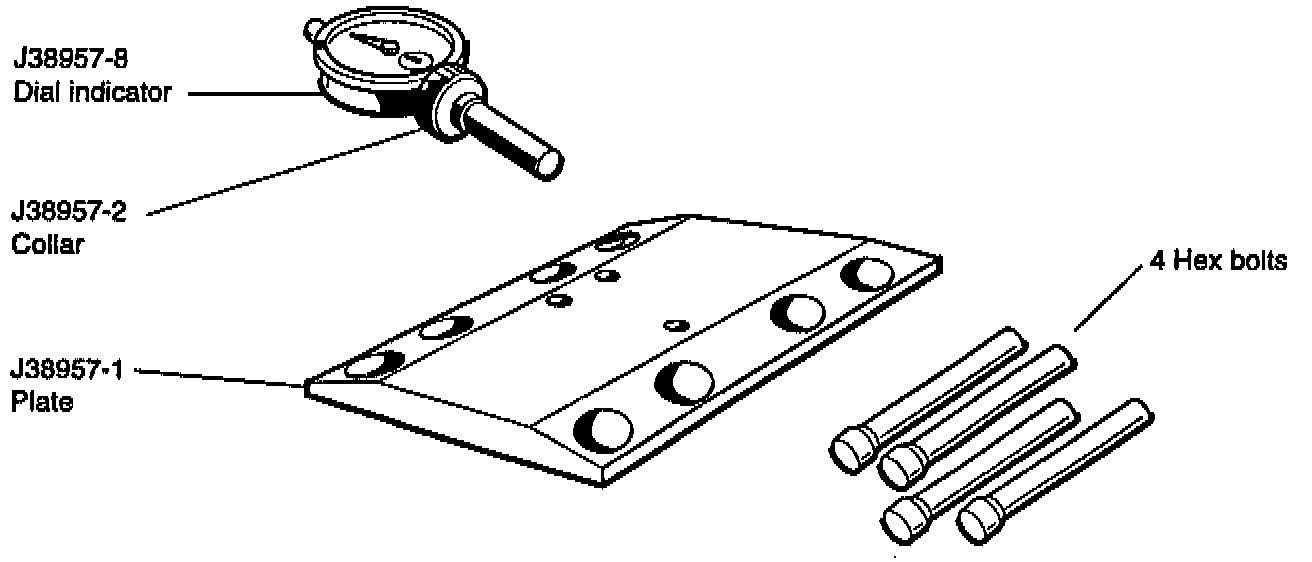 3. Install the J38957-1 gauge plate into the tapped holes at the cam journals and secure it to the head using two of the hex bolts supplied with the kit. (The two remaining bolts are spares.)