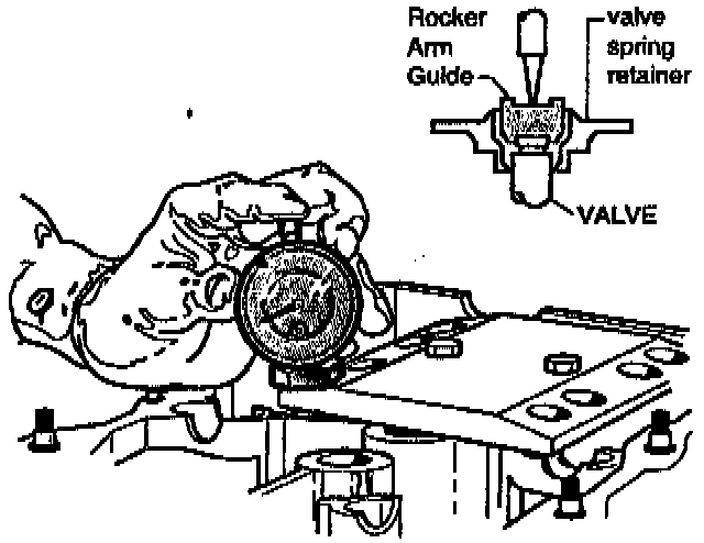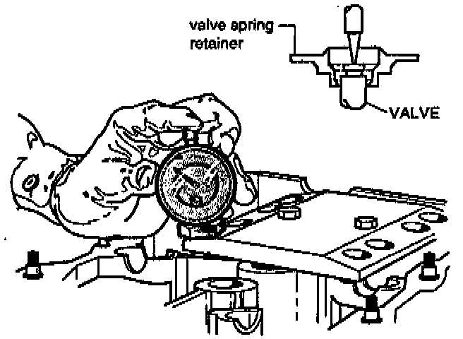 2. Before attempting any measurement, make sure the valve, valve spring, collet, retainer and rocker arm guide are properly installed in the head.